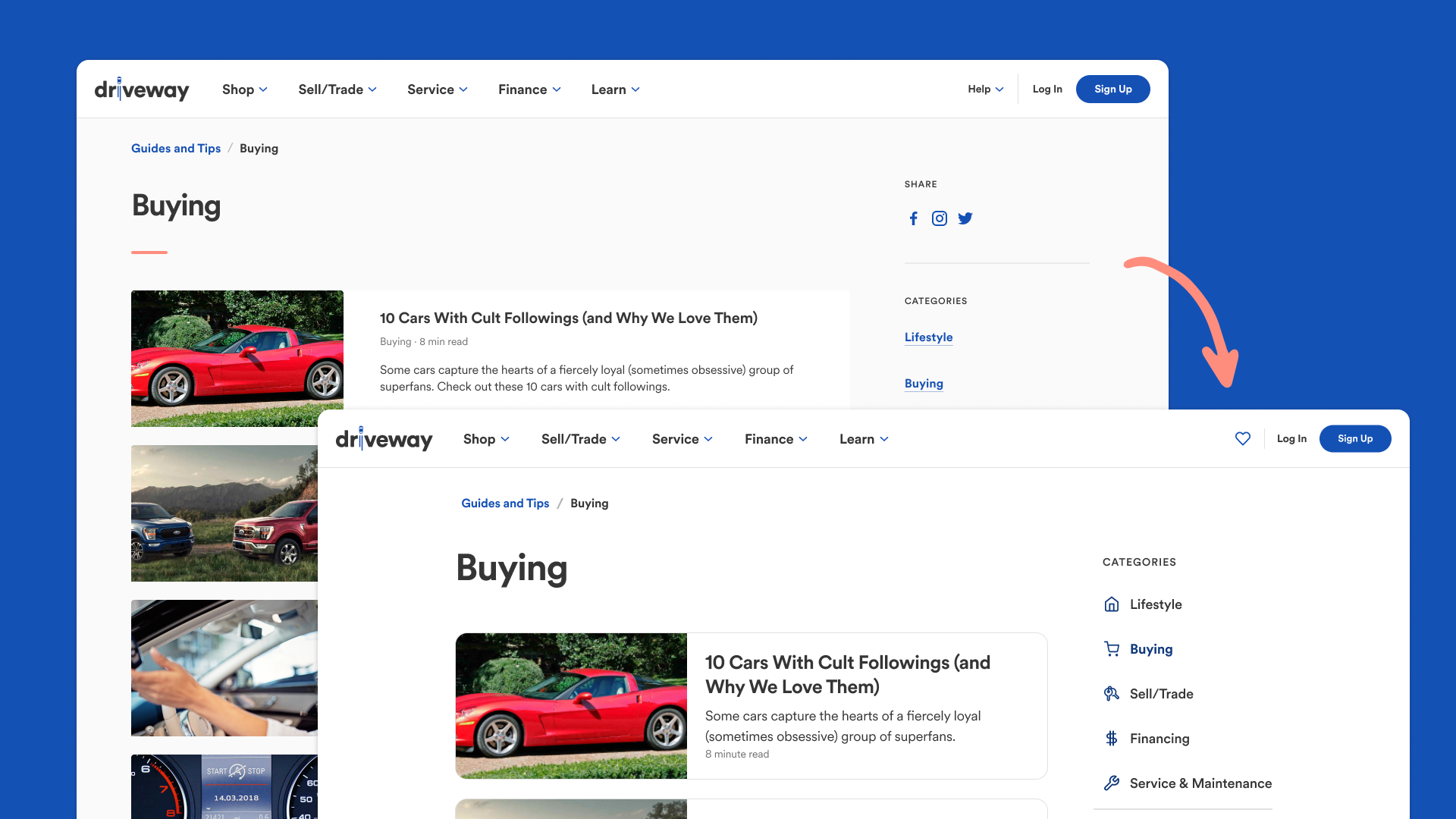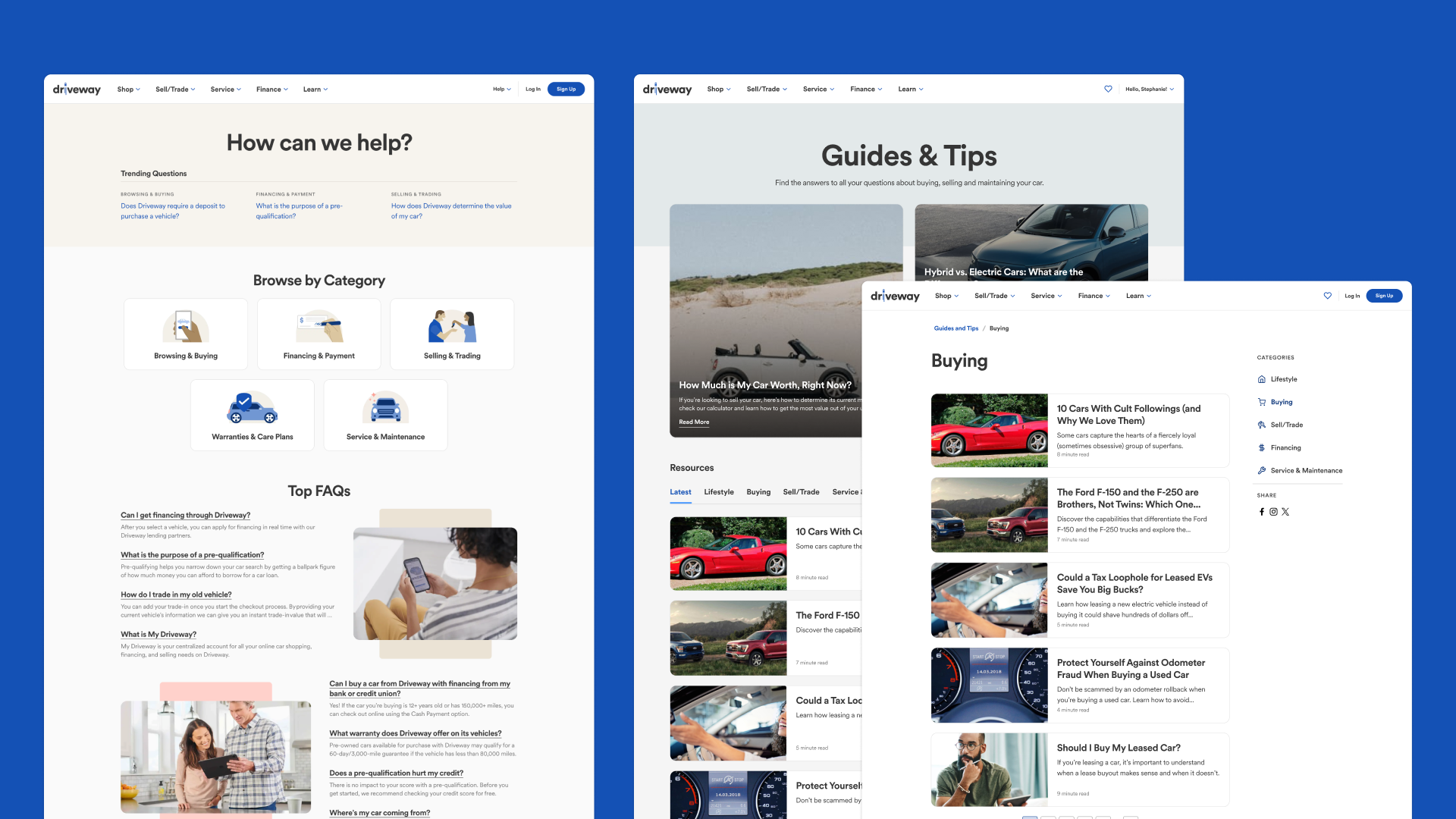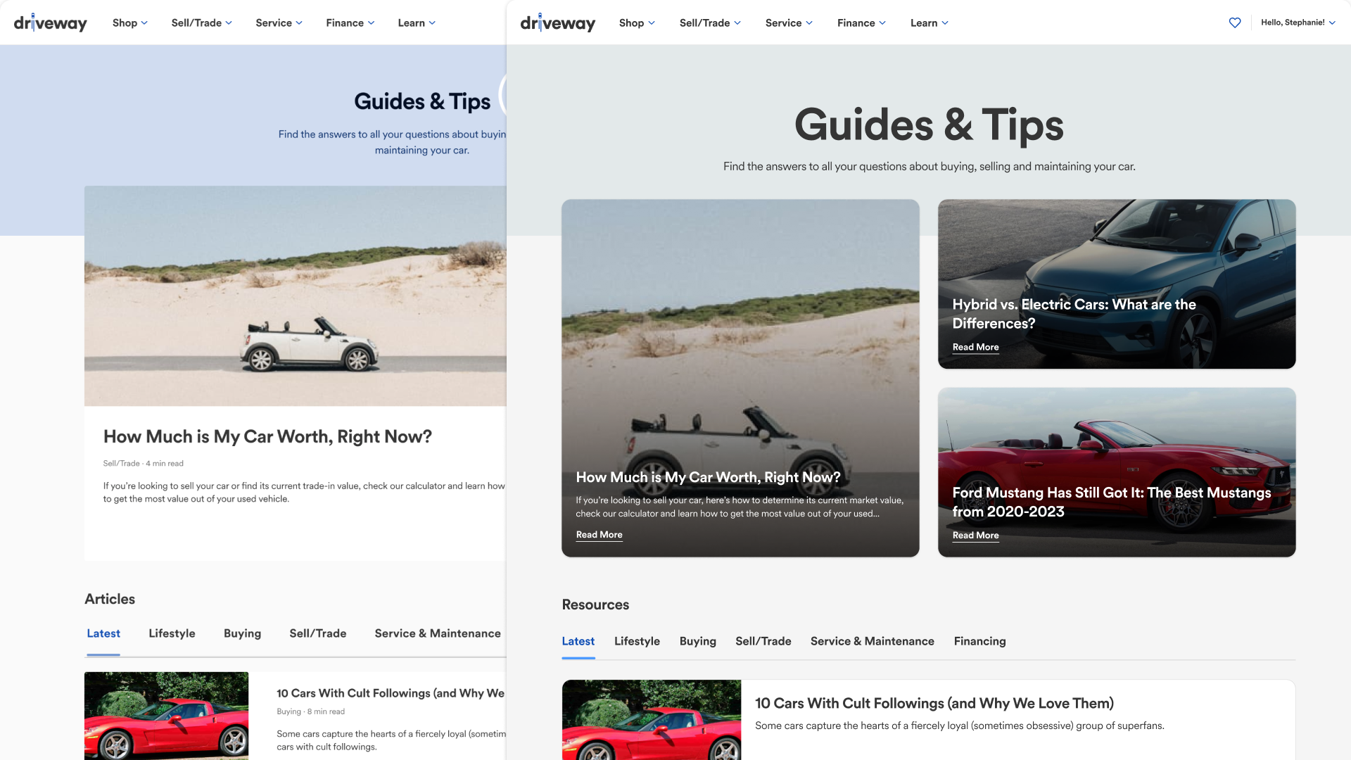 The Guides and Tips Category pages had the same layout as My Driveway.