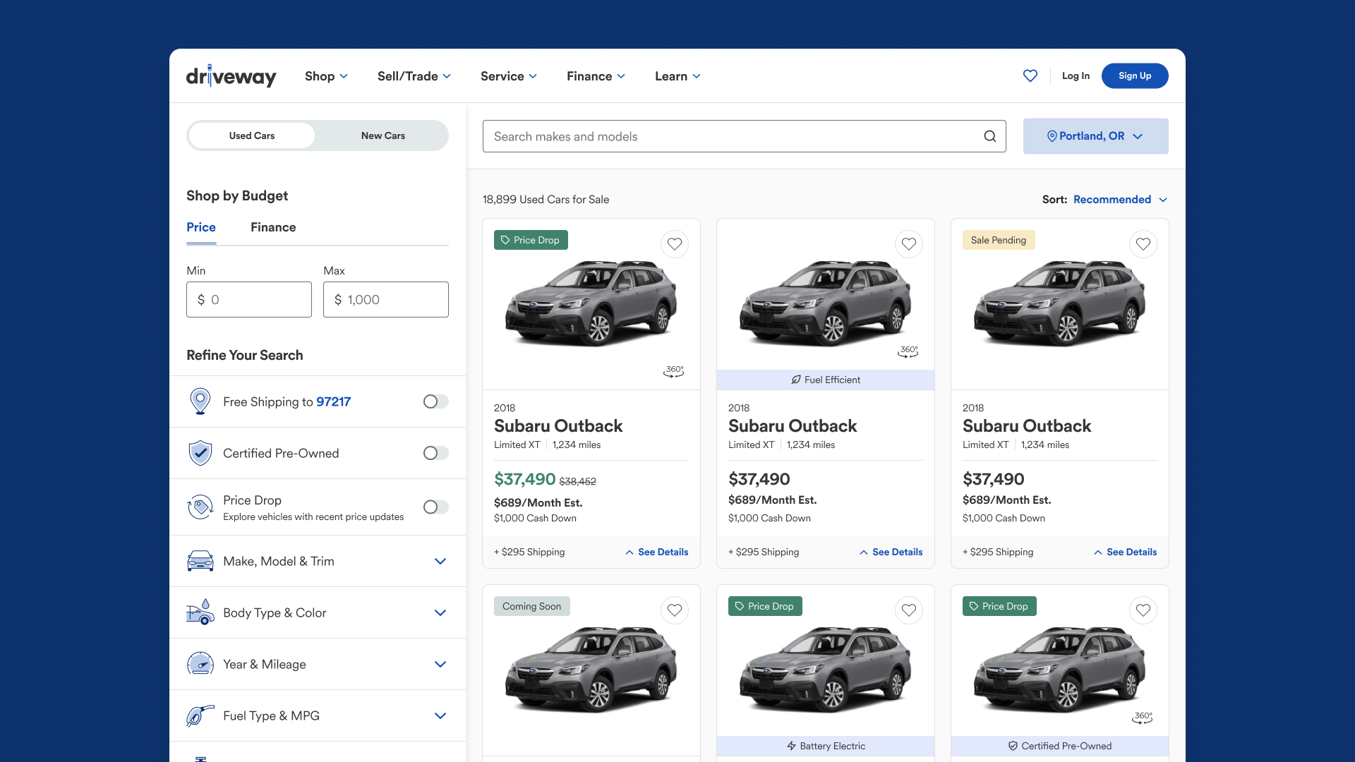 Roughly 30% of used inventory on Driveway qualifies for a price drop at any given time. The business wanted to surface that signal on the vehicle card to motivate customers and increase conversions. Show the customer the price went down, watch them feel good about it, maybe buy a car. Simple enough.